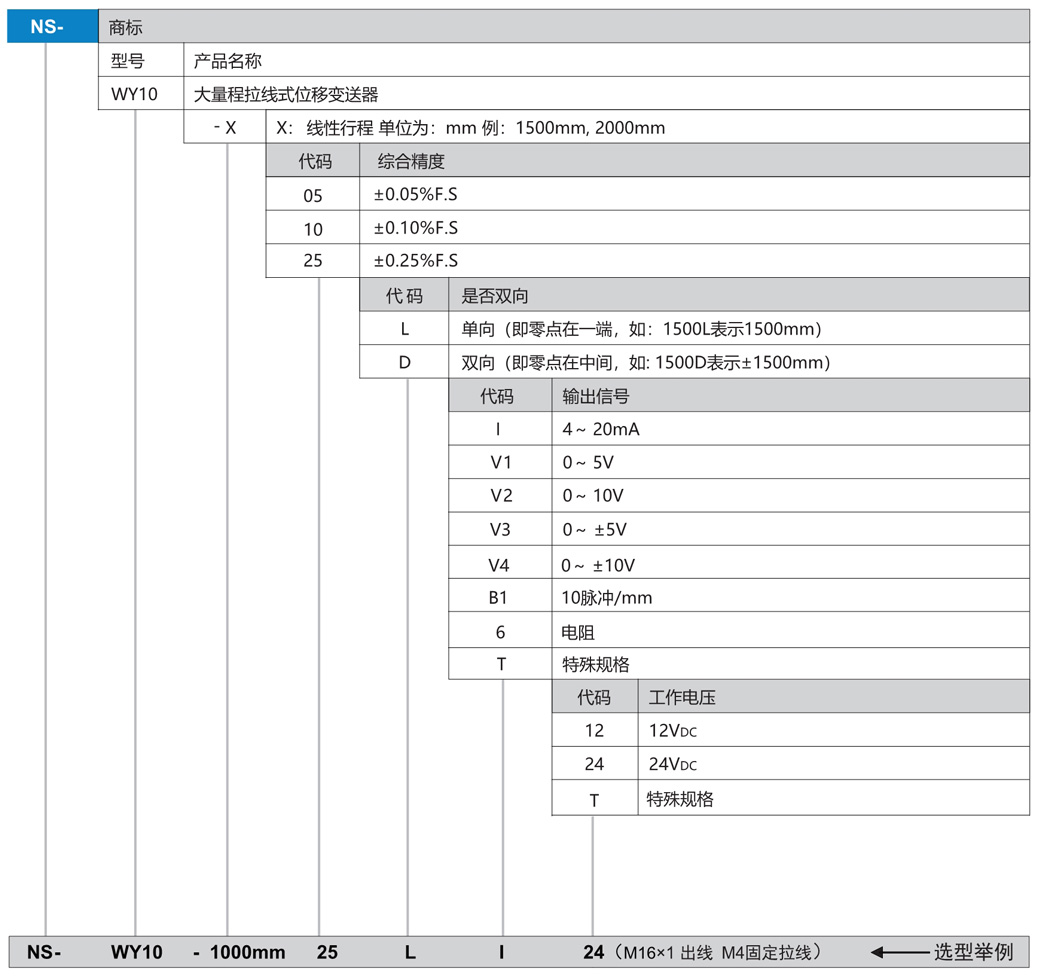 NS-WY10系列 拉線式位移傳感器